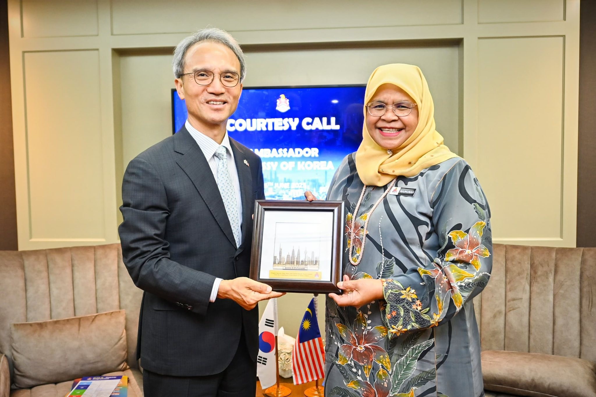 YBhg. Dato’ Seri TPr (Dr.) Maimunah binti Mohd Sharif, Datuk Bandar Kuala Lumpur hari ini telah menerima kunjungan hormat daripada TYT Yeo Seung-bae, Duta Besar Korea Selatan ke Malaysia, bertempat di pejabat beliau.