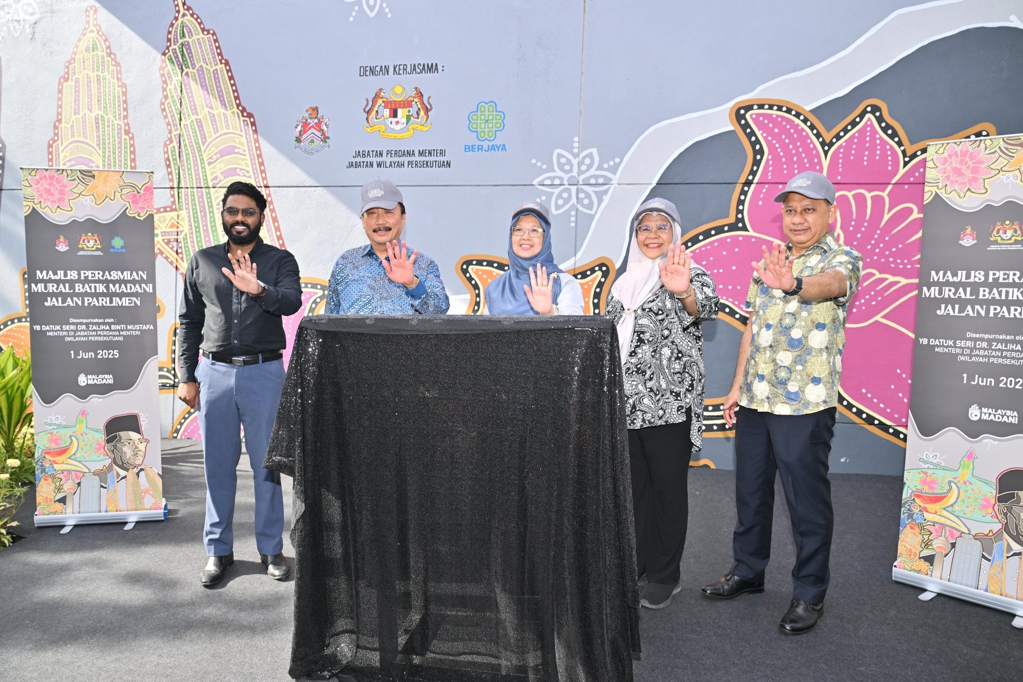 YB Datuk Seri Dr. Zaliha binti Mustafa, Menteri di Jabatan Perdana Menteri (Wilayah Persekutuan), telah merasmikan Mural Batik MADANI yang terletak di Zon Jejak Pahlawan, Jalan Parlimen, Kuala Lumpur. Majlis tersebut turut diserikan dengan kehadiran YBhg. Dato’ Seri TPr (Dr.) Maimunah binti Mohd Sharif, Datuk Bandar Kuala Lumpur, dan YBhg. Tan Sri Dato’ Seri Vincent Tan Chee Yioun, Pengasas dan Penasihat Berjaya Corporation Berhad.