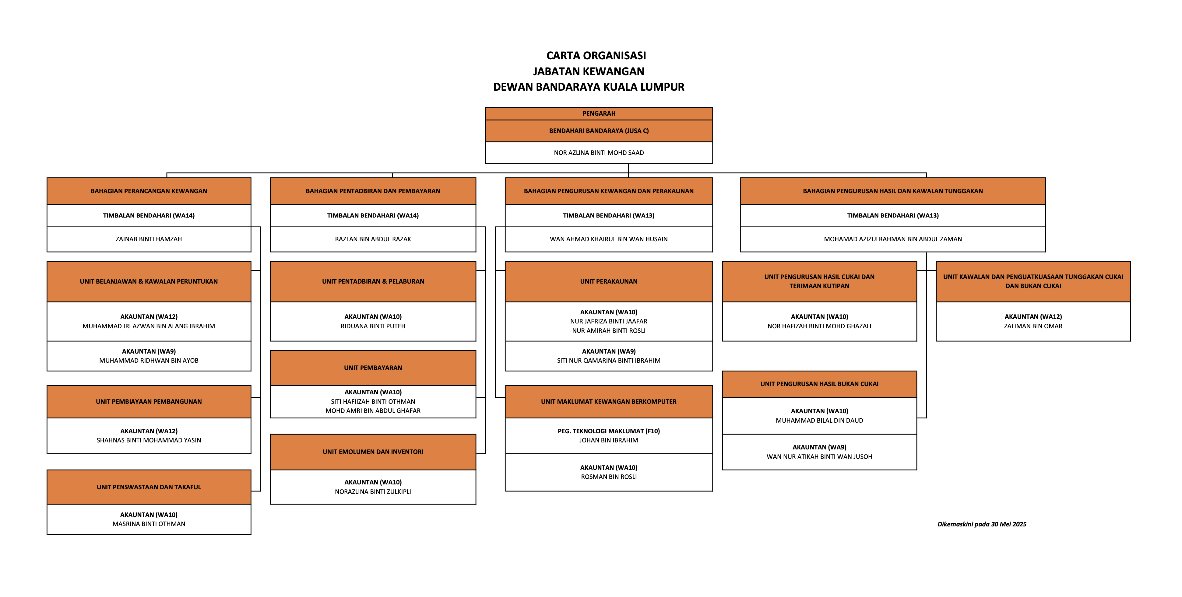 | 7 | Mohd Azizulrahman bin Abdul Zaman | Accountant WA48 | 03-26179172 | azizulrahman | - | - | - | - |