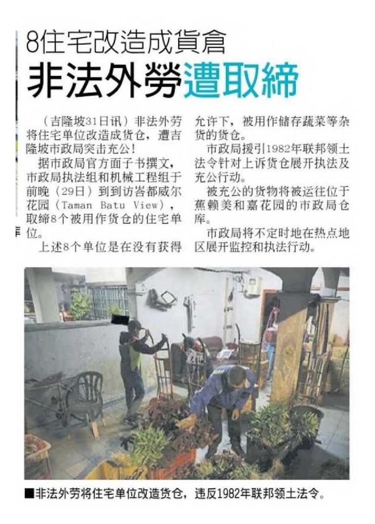 Home / Newspaper Clipping / 8 Houses Converted Into Warehouses Illegal Foreign Workers Busted – China Press