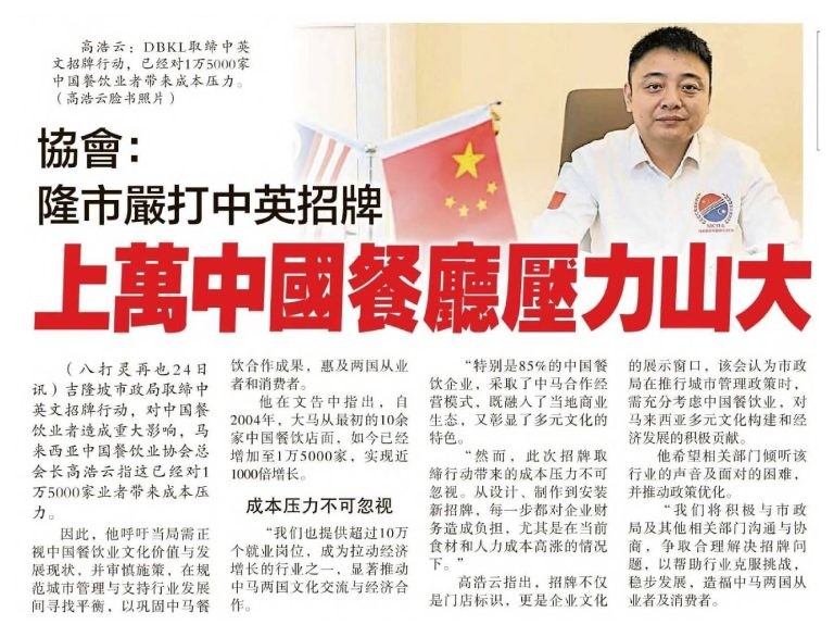 Association: DBKL cracks down on Chinese and English signboards tens of thousanda of Chinese restaurants under tremendous pressure. – Sin Chew Daily