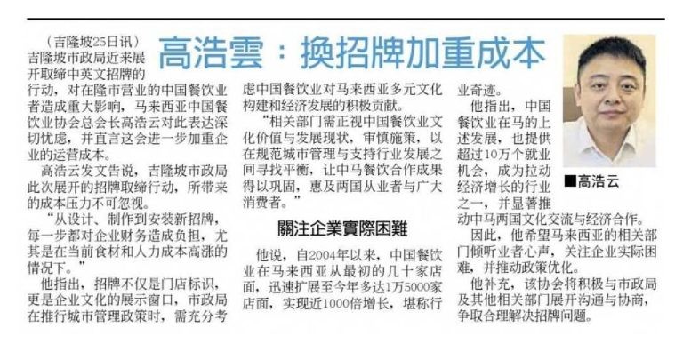 Home / Newspaper Clipping / Gao Haoyun: Changing The Signboard Will Increase Costs – China Press