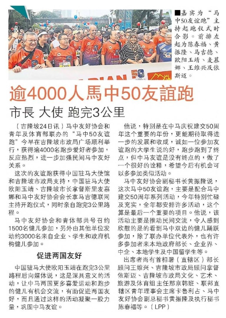 More than 4 000 people participated in the China-Malaysia Friendship Run; Mayor and Ambassador completed 3 km – Guang Ming Daily