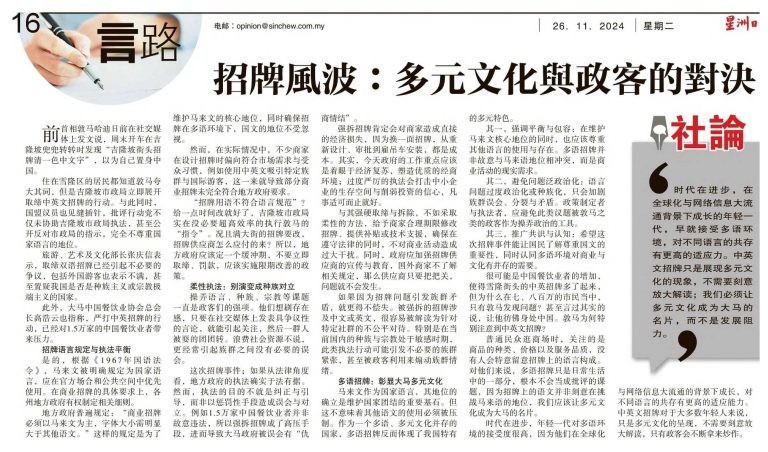 Sumber : Sin Chew Daily