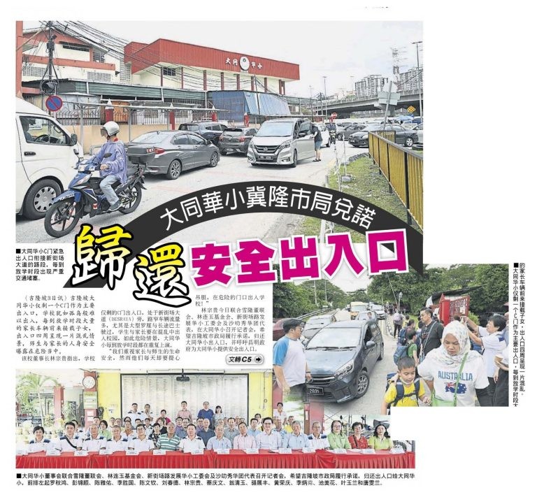 Home / Newspaper Clipping / SJK (C) Tai Thung Hopes That DBKL Will Fulfill The Promise Of Returning The Safe Entrance And Exit. – China Press
