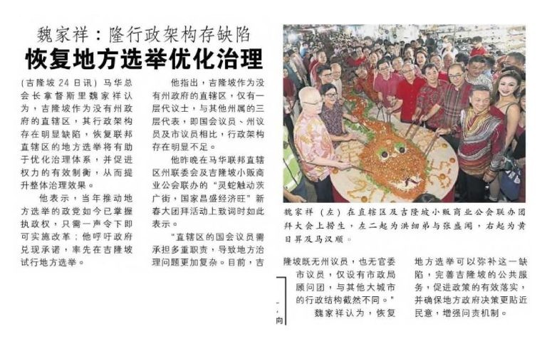 Wee Ka Siong: There Are Flaws In The Administrative Structure Of Kuala Lumpur. Restoring Local Elections Will Improve Governance. - Nanyang Siang Pau